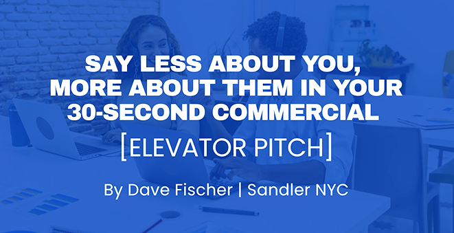 Most 30-Second Commercials [Elevator Pitches] tend to fail for one simple reason: they focus too much on the seller and not enough on the buyer.