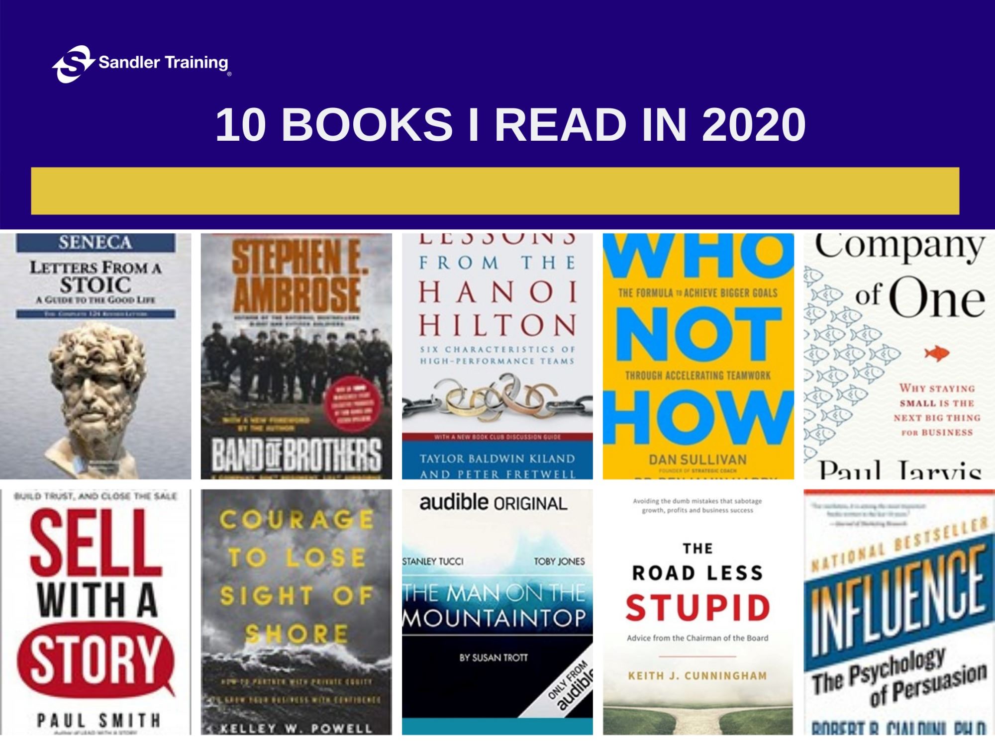 In 2020, we were hit with an unexpected curveball in mid-March. All plans were no longer valid. Playbooks were irrelevant. The old way quickly became antiquated. Personally, some of the insights I gained from reading (and having a close circle of accountability partners to help drag me into the new environment) allowed our company to thrive, even in the midst of the chaos.