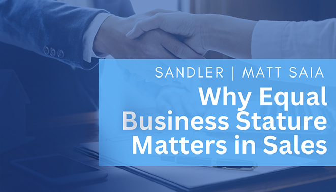 One of the most important principles in the Sandler Selling System is establishing and maintaining *equal business stature*. It sounds simple, but many salespeople struggle with it. Too often, they slip into the role of “yes-man,” adjusting their process, skipping steps, or even begging for the sale—all because they think it’s what the buyer wants. The result? Lost credibility and weaker outcomes.