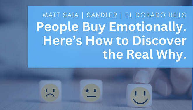 Learn how to uncover the emotional drivers behind every sale with Matt Saia at Sandler El Dorado Hills, CA. Discover how sales and leadership training improves questioning, listening, and closing strategies for consistent results. Contact us here to find out more.